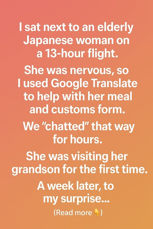 Through the glow of a smartphone screen, the two began “talking” in translated phrases. She shared that she was from a small town in Japan, flying to meet her grandson for the very first time. Excitement and nerves mingled in her words, even with the occasional mistranslation.