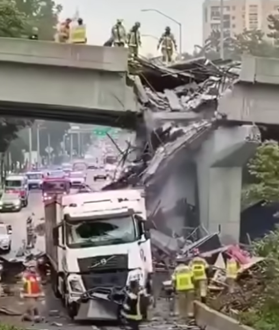 A construction site turned into an emergency scene when part of an elevated highway under development showed signs of severe structural instability. Workers on the project acted quickly, evacuating moments before sections of the structure began to shift and collapse. Safety crews, cranes, and support teams rushed in to secure the area and assess the damage.