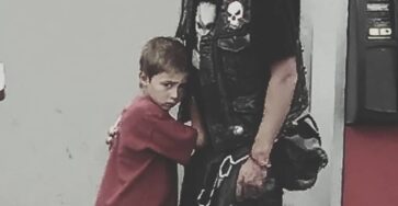 A six-year-old boy, bruised and barefoot in his pajamas, ran straight to the scariest-looking biker he could find and begged,…