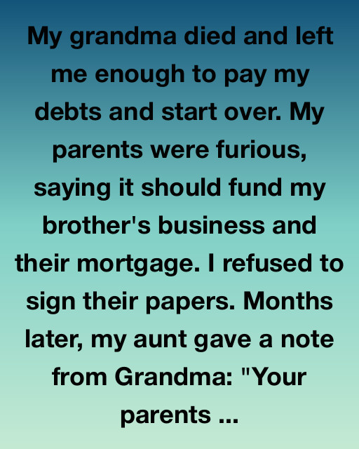 I must’ve read my grandmother’s note fifty times the night my aunt handed it to me. The handwriting trembled, but her words cut clear: “Your parents will try to take this from you. Don’t let them. You’ve always been the one who needed a chance. Take it.” It felt like both a blessing and a warning — a love letter wrapped in fire.