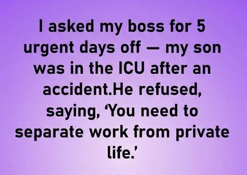 That first night blurred into morning. I slept in a plastic chair, waking at every sound. When the sun rose, I called my boss. Five days off. No vacation, no drama—just time to be there for my son.
