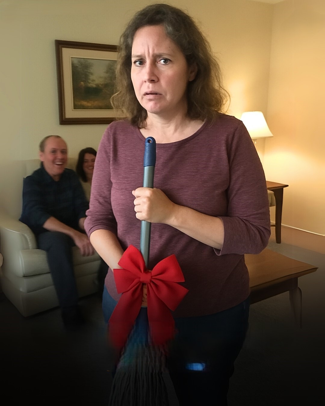 Later, Carl called for everyone’s attention. With a smile, he handed me a large, beautifully wrapped box. The room fell quiet, anticipation thick in the air. I opened it… and stopped cold. Inside was a mop.