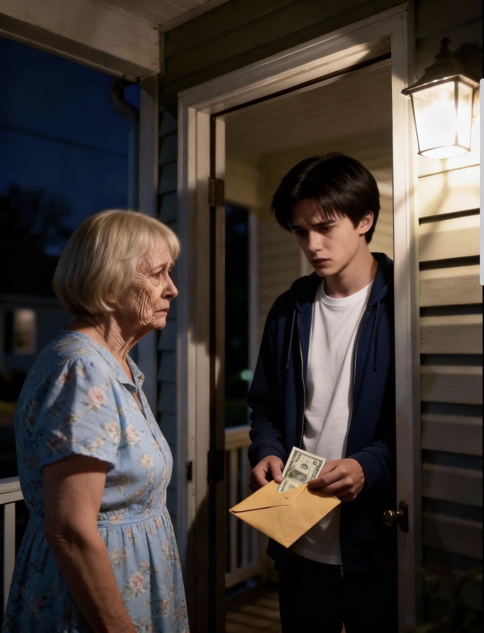 Close to midnight, a knock at the door. It was Ethan, my 18-year-old grandson, exhausted, holding an envelope. He had driven four hundred miles, borrowed a car, and brought his last $500. “I couldn’t let you be alone,” he said.