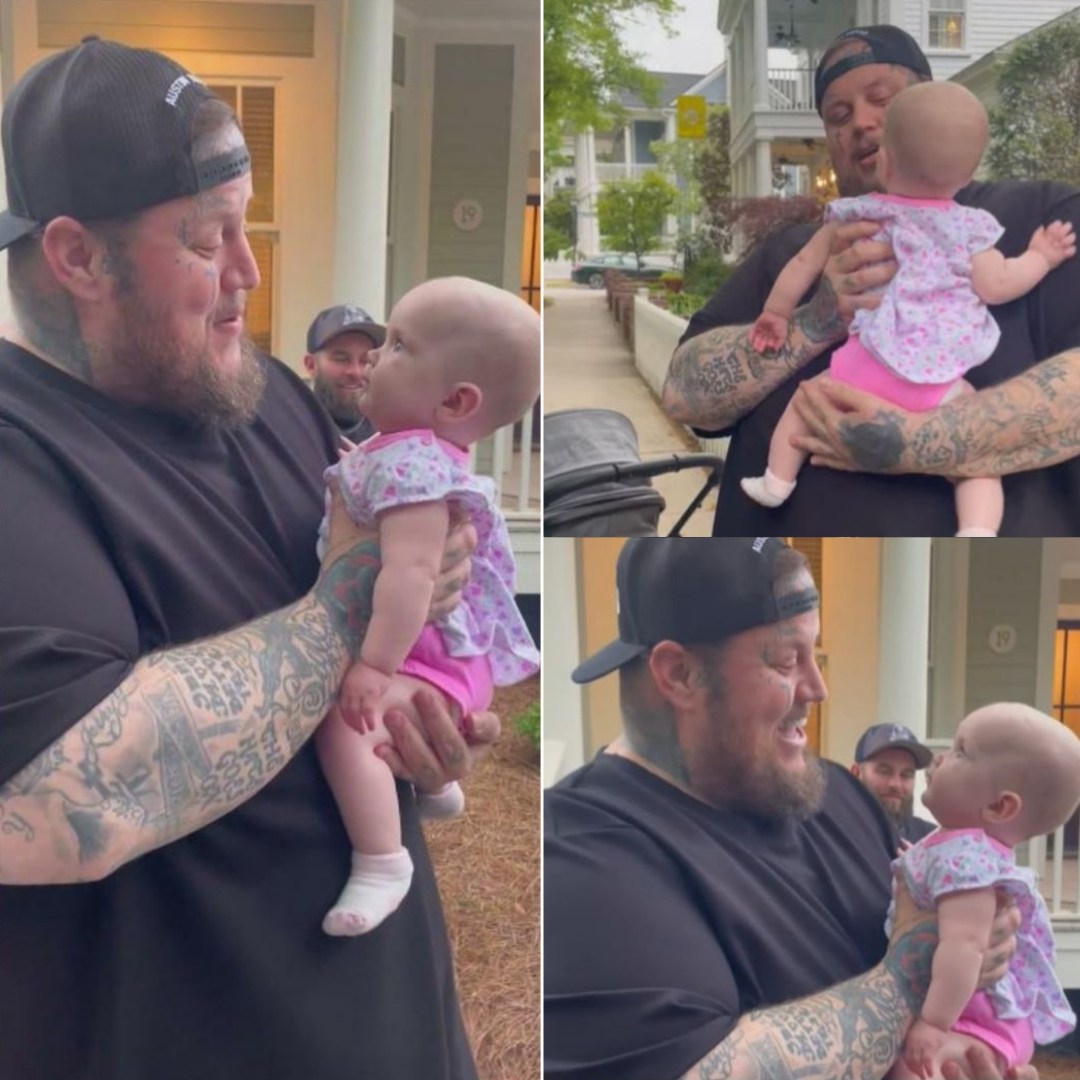 A snapshot from the encounter shows Jelly Roll gently holding baby Wrenley, his familiar smile lighting up the scene. The baby looks up at him with wide-eyed curiosity, creating a truly touching image.