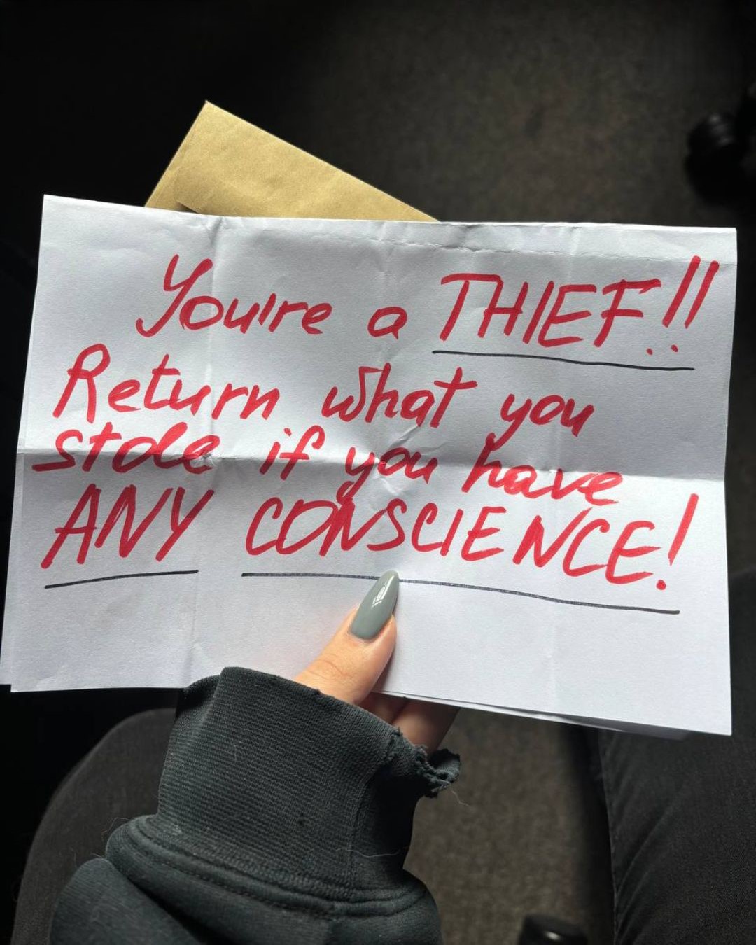 “You’re a thief. Return what you stole if you have any conscience left.”
