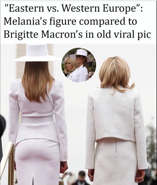 The image, taken during French President Emmanuel Macron’s state visit to Washington, shows the then–First Lady standing alongside French First Lady Brigitte Macron. Both women wore elegant all-white outfits during the official White House welcome ceremony, creating a striking moment of diplomatic style.