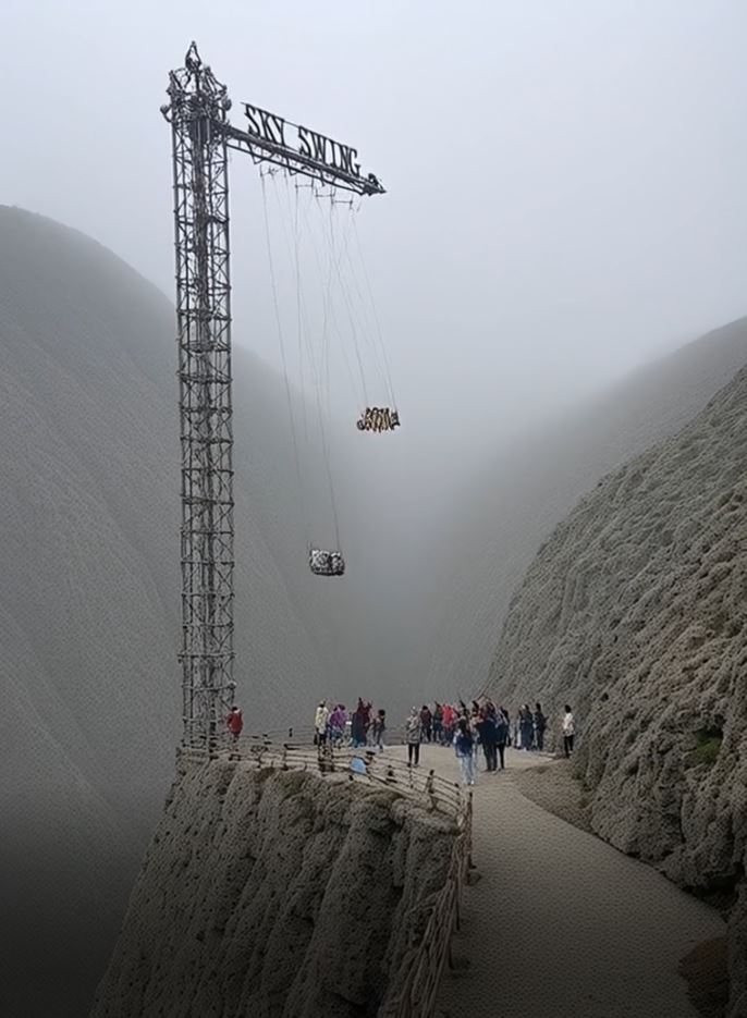 Thrill-seekers beware—this is one rollercoaster of a moment you won’t forget anytime soon. A massive sky swing, built on the edge of a cliff for adrenaline junkies, suddenly malfunctioned mid-air, leaving everyone around gasping in shock.