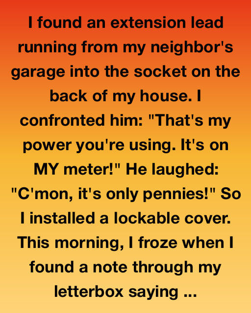 “That’s my power you’re taking,” I said sharply. “It’s running on my meter.”