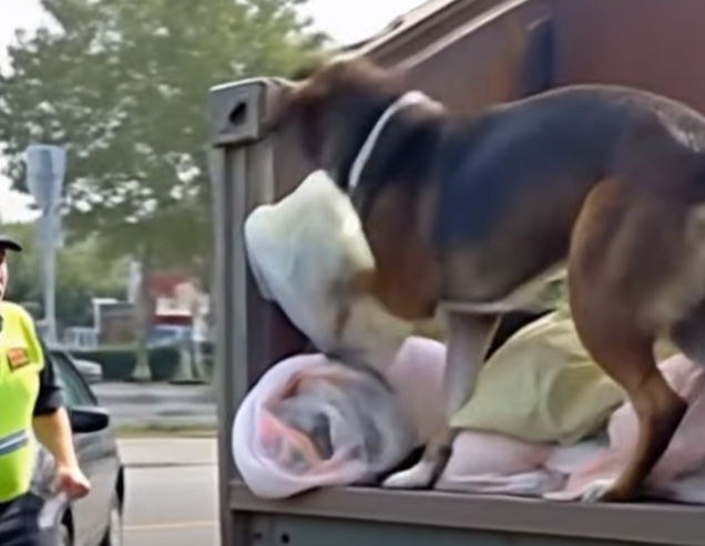What began as an ordinary day quickly turned into an unexpected rescue after a police K9 alerted officers to something unusual near a garbage truck. During a routine patrol, a trained police dog repeatedly barked and refused to move past the vehicle, signaling to its handler that something was wrong.