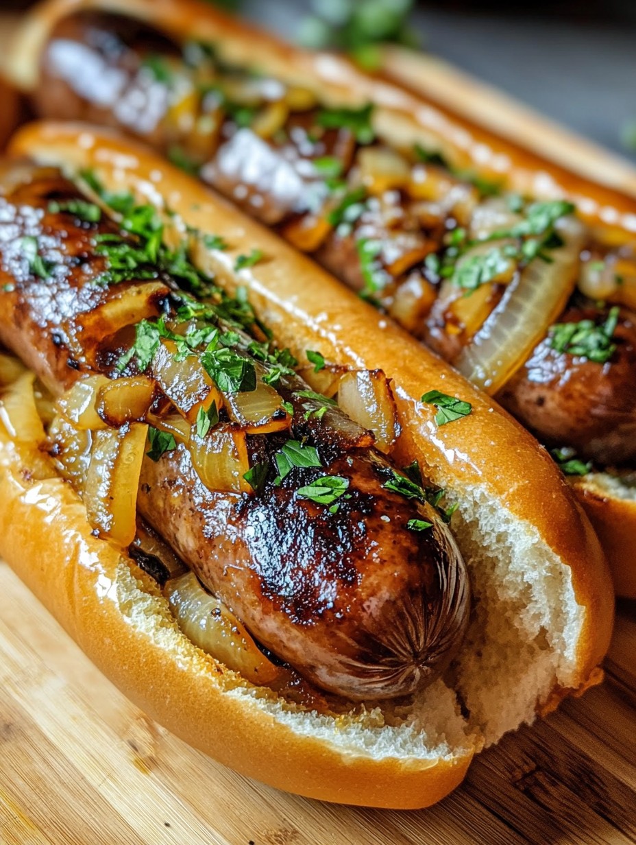 The bratwursts soak up the savory liquid while the onions cook down into a sweet, jammy topping. Pile it onto the sausages for a bite that’s pure comfort food