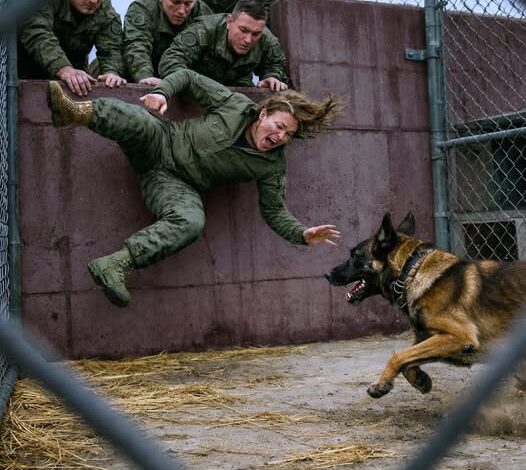 She was twenty-six. Barely five-foot-three. Hair pulled tight into regulation. No weapon. No protective gear. Just calm. The steel door slammed shut behind her, locking her in with a dog no one else dared approach.